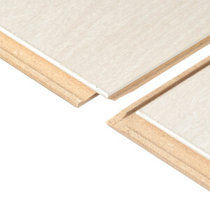 панель ХДФ (древесноволокнистая плита высокой плотности), несколько слоев бумаги, которые пропитаны меламиновой смолой и спрессованы при высоком давлении и температуре.