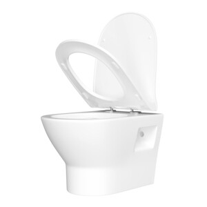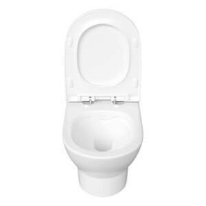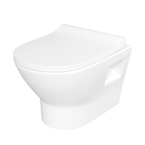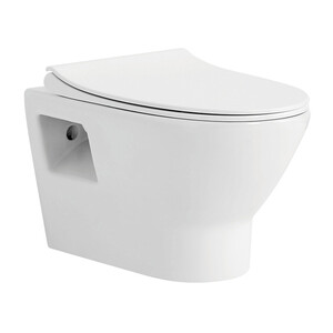 Подвесной унитаз лаконичной формы с открытым креплением для легкого монтажа. Размер 500х355х365 мм.