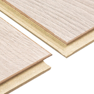 панель ХДФ (древесноволокнистая плита высокой плотности), несколько слоев бумаги, которые пропитаны меламиновой смолой и спрессованы при высоком давлении и температуре.