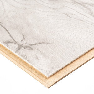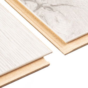 панель ХДФ (древесноволокнистая плита высокой плотности), несколько слоев бумаги, которые пропитаны меламиновой смолой и спрессованы при высоком давлении и температуре.