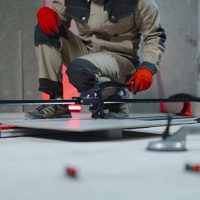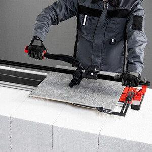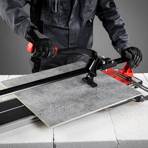 Рельсовый плиткорез способен резать плитку длиной до 1200 мм и толщиной до 16 мм для придания ей необходимых размеров. Мощный разделитель справляется с резкой не только керамической, но и керамогранитной плитки. Конструкция позволяет производить разлом в любой точке поверхности плитки. Инструмент используется во время проведения облицовочных работ.