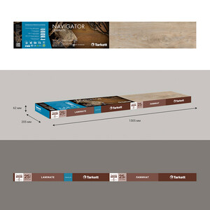 Коллекция Navigator 33 класса может укладываться в помещениях даже с высокой интенсивностью использования. Толщина 12 мм обеспечивает дополнительную звукоизоляцию и высокую устойчивость к нагрузкам. А также в этих дизайнах используются дополнительные обработки поверхности: – Технология Тиснения в регистре, когда тиснение совпадает с имитацией волокна рисунка дерева, на полу максимально природный эффект визуально и на ощупь; – Эффект массивной доски – 4-х сторонняя крашенная фаска. Для влагостойкости в ламинате Tarkett применяется технология Tech3S – это обработка специальным воском замкового соединения. А вместе с замком TC-Lock – это легкая укладка.